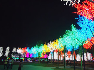 The place were greatly lighted with various colours of lights made into the shape of tree leaves...